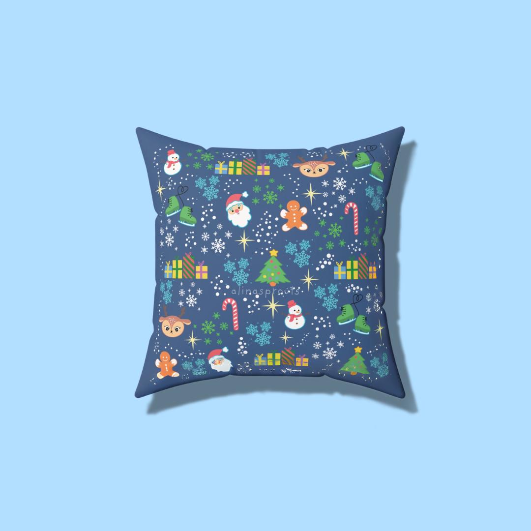 Square pillow with a festive-themed pattern design, perfect for the winter, holiday season, Christmas. FREE SHIPPING.